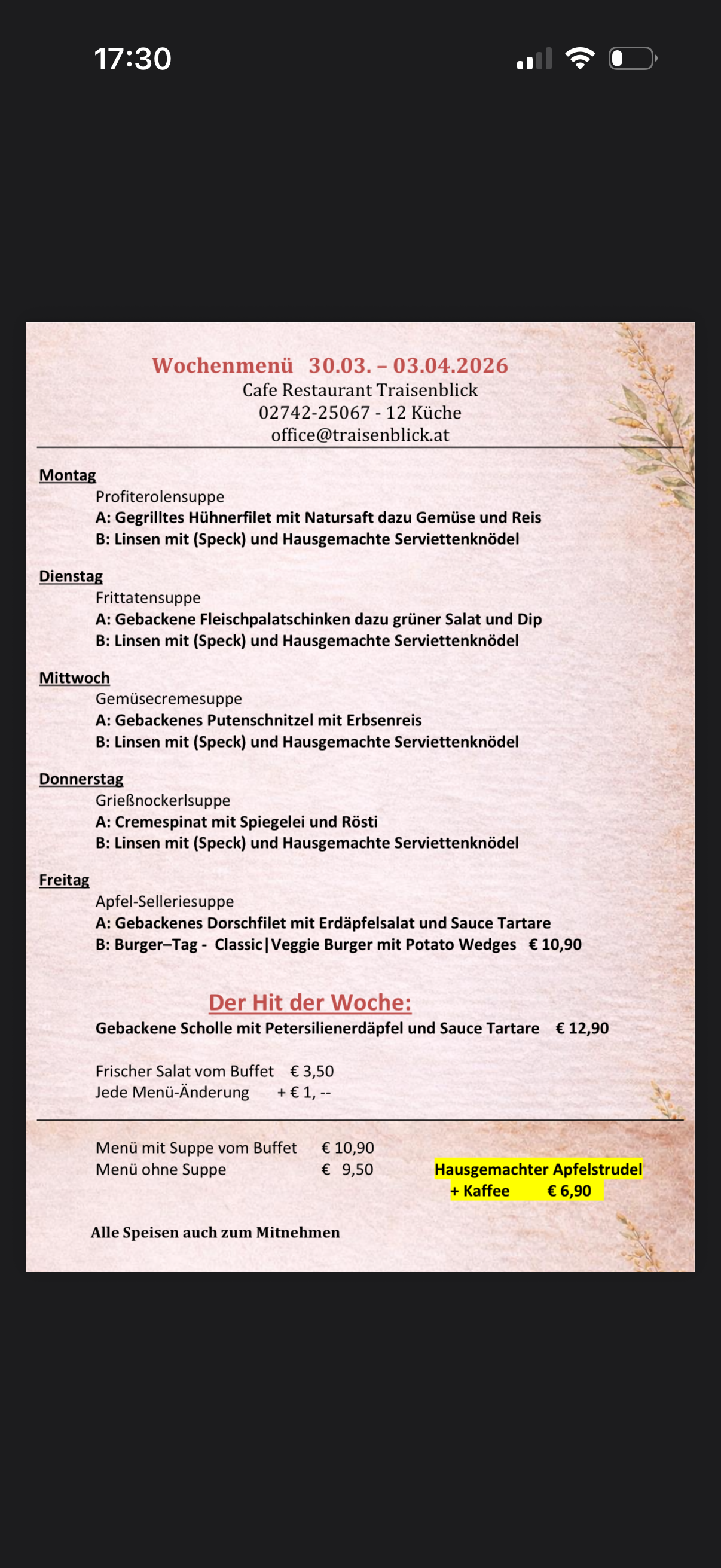 Am Nachmittag laden wir Sie ein, unsere hausgemachten Mehlspeisen gemeinsam mit einer Tasse Kaffee zu genießen - perfekt für entspannte Auszeit.